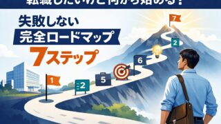 転職エージェント 転職したいけど何から始める?|失敗しない完全ロードマップ7ステップ 「転職したいけど何から始める?」という方へ。自己分析から内定までの完全ロードマップを7ステップで解説。失敗パターンとおすすめエージェントも紹介します。 2026.04.10 転職エージェント転職ノウハウ